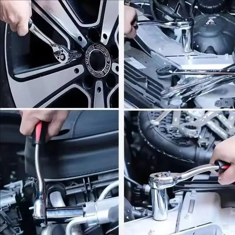 LIDIAO Handle Wrench Set 12pcs Socket Ratchet 1/2 Spanner Kit with Extension Rod and 10 Common Sockets Car Repair Hand Tools